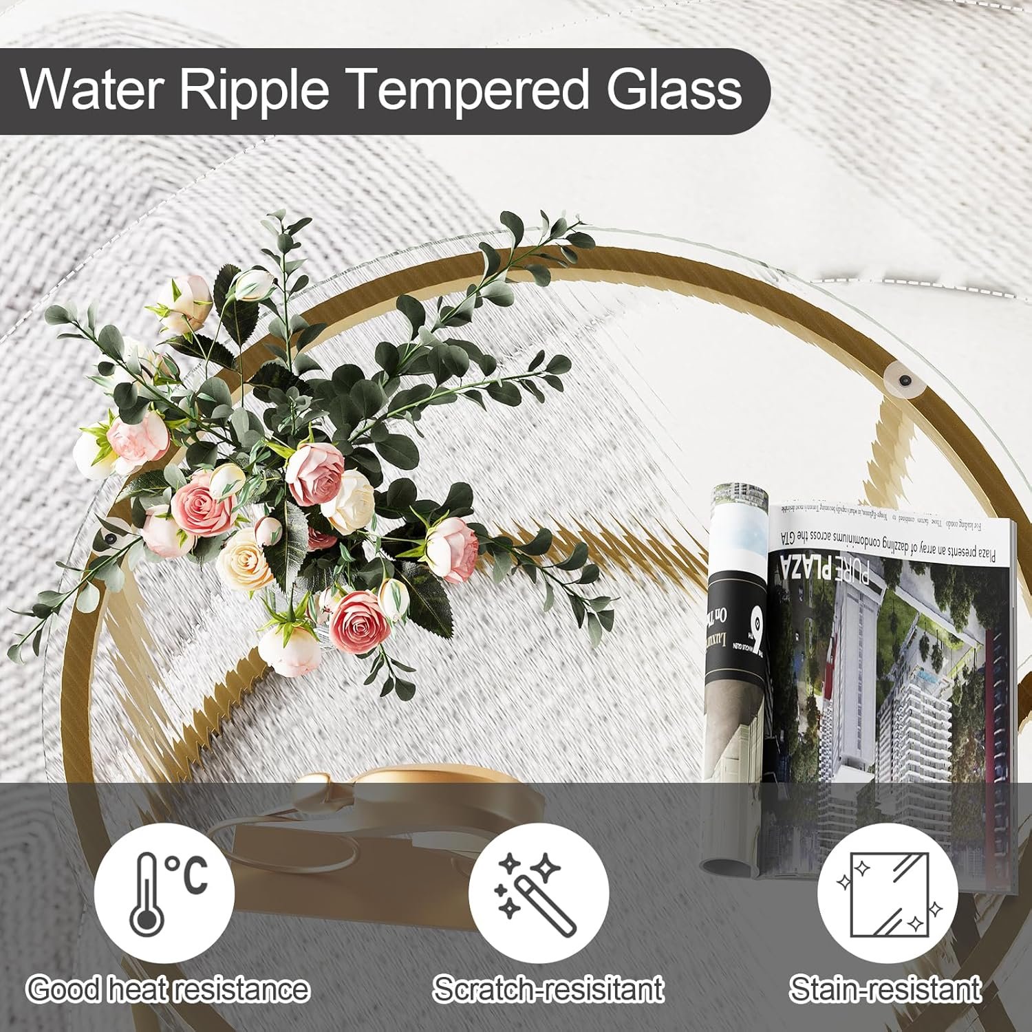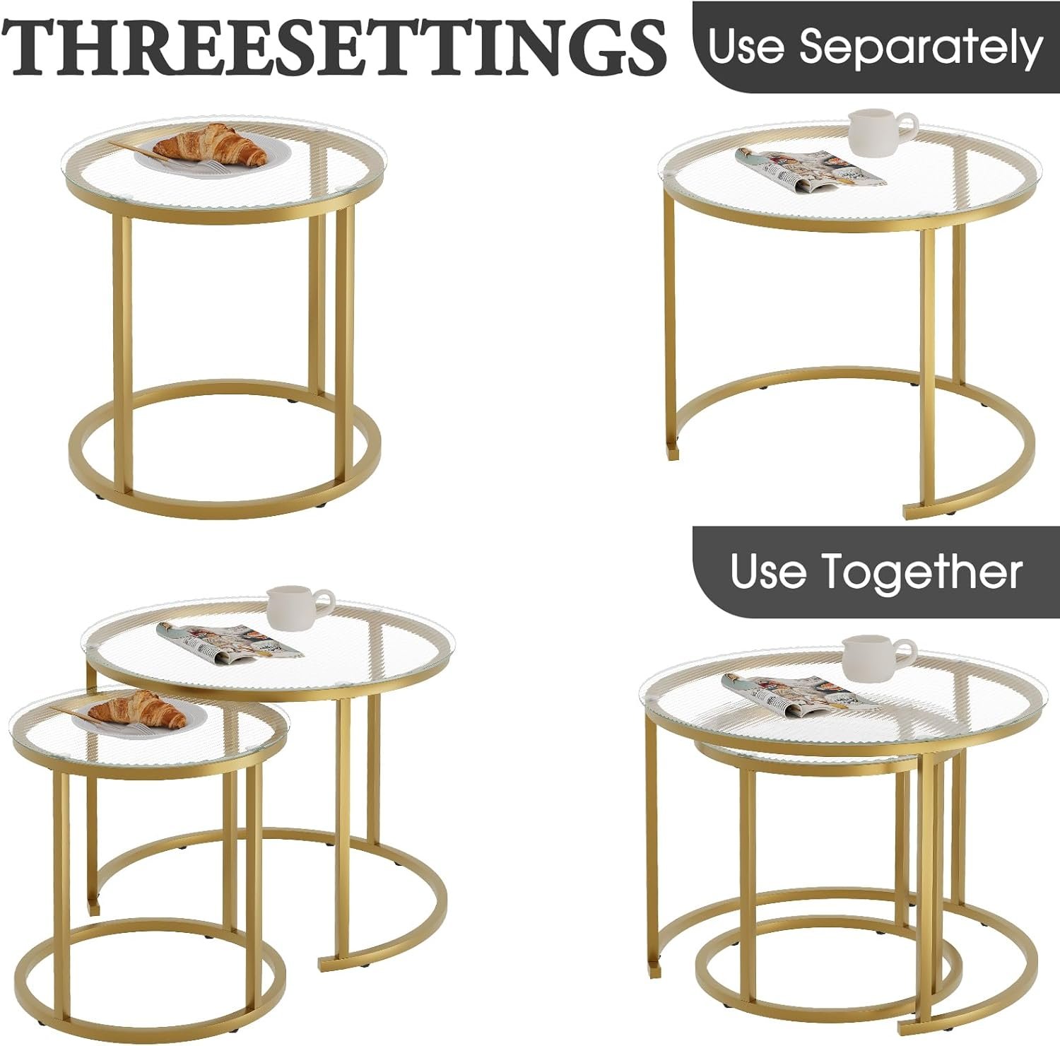 - Modern Industrial Design: Clear glass tabletops with a gold metal frame bring a minimalist yet sophisticated look, complementing a wide range of interior styles.