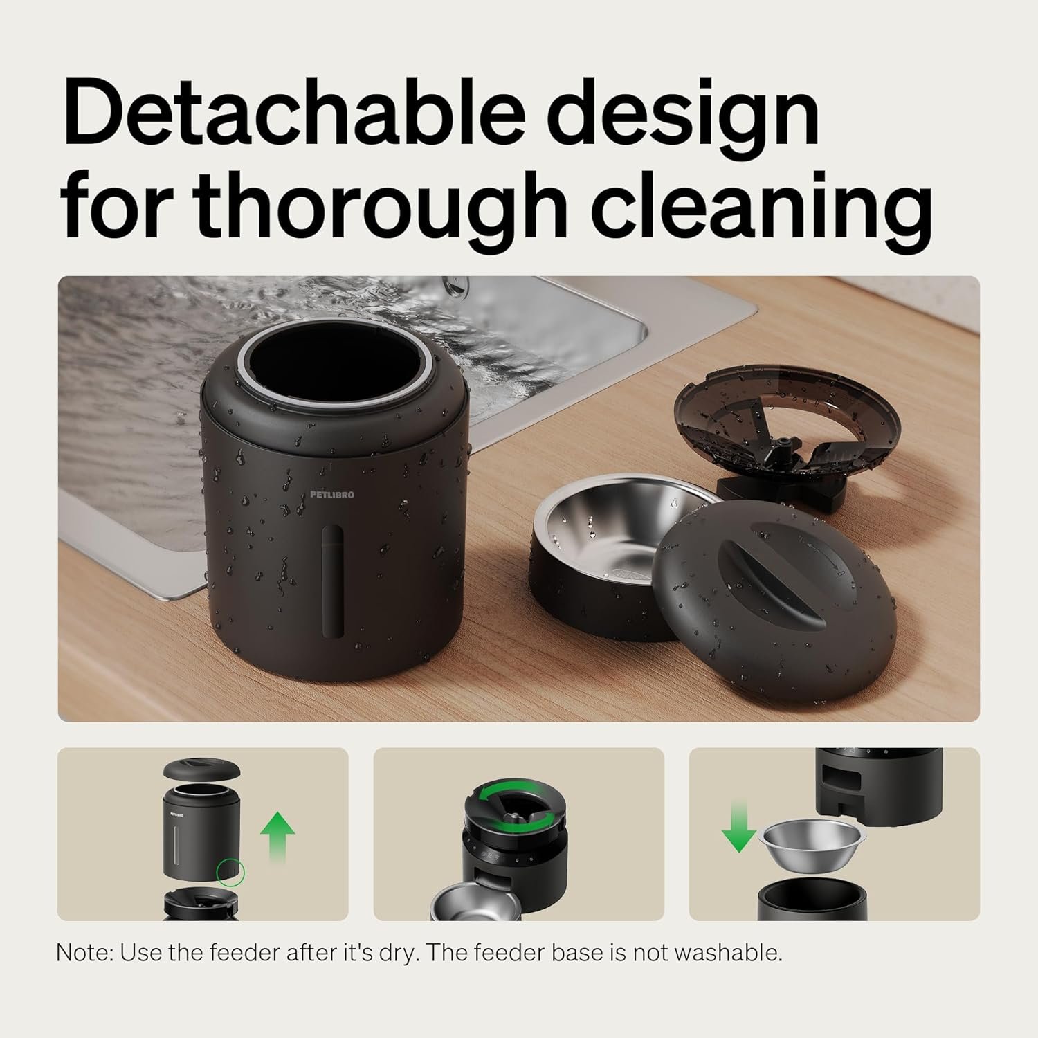 Food freshness is a major concern with automatic feeders, and PETLIBRO addresses this effectively. The twist-lock lid prevents pets from breaking into the food container, while the built-in desiccant bag system helps keep dry food fresh and crunchy for longer periods.