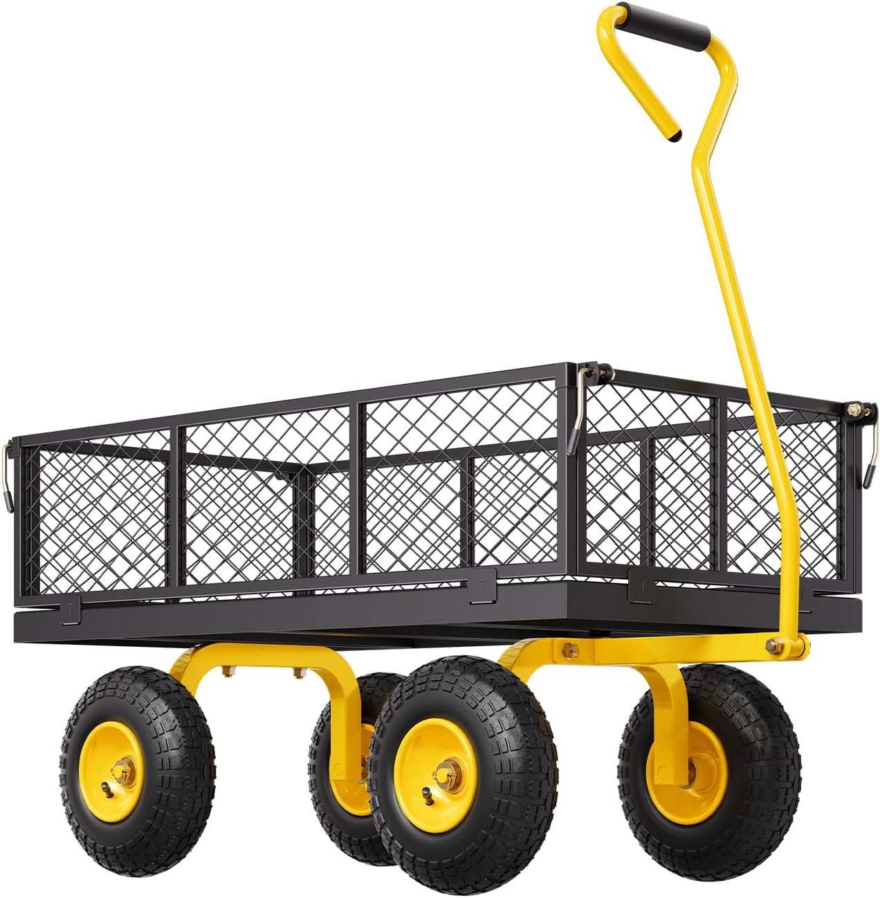 One of its standout features is the removable mesh sides, which allow the cart to quickly convert into a flatbed. This makes it especially useful for hauling oversized or awkwardly shaped items that wouldn’t fit in a standard garden wagon.